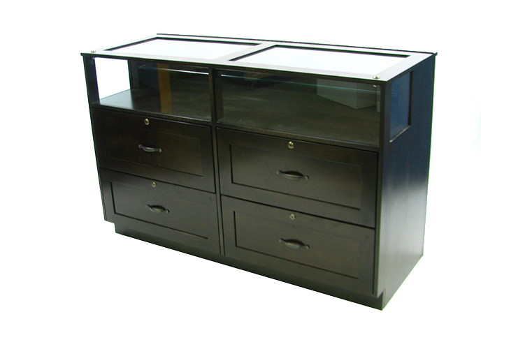 A retail store with several locations wanted an elegant table to display folded up clothes, ties, shoes, and purses.